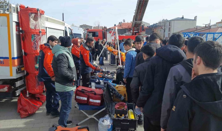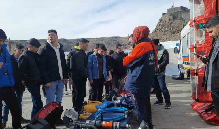 Kars İl Afet ve Acil Durum Müdürlüğü (AFAD) tarafından 1-7 Mart Deprem Haftası etkinlikleri çerçevesinde vatandaşlar bilgilendiriliyor.