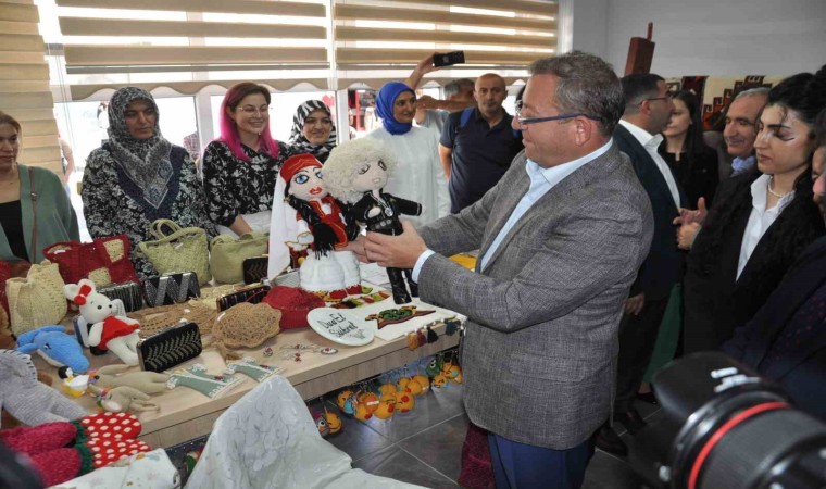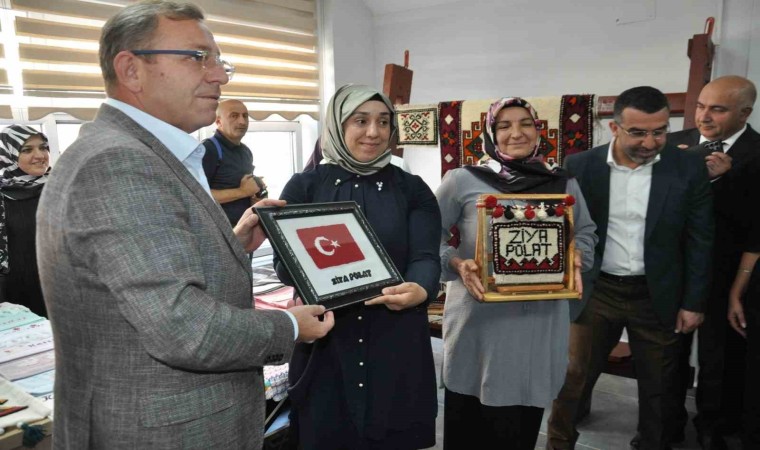 Protokol üyeleri daha sonra merkezi gezerek kursiyerlerin ürünlerini inceledi, yetkililerden bilgi aldı. Kursiyerler tarafından Vali Ziya Polat ve Milletvekili Adem Çalkın’a hediyeyi takdim edildi.