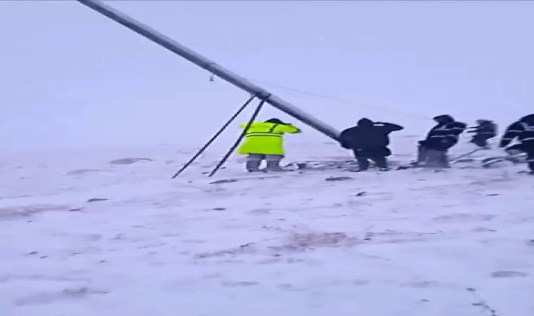 Kars’ta tipi ve şiddetli rüzgar nedeniyle devrilen elektrik direği ARAS EDEŞ ekiplerine zor anlar yaşattı.
