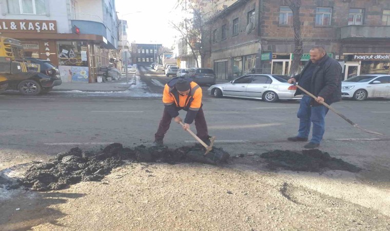 Kars’ta etkili olan kış şartlarından dolayı bozulan yolların onarımı için Kars Belediyesi ekipleri çalışma başlattı.