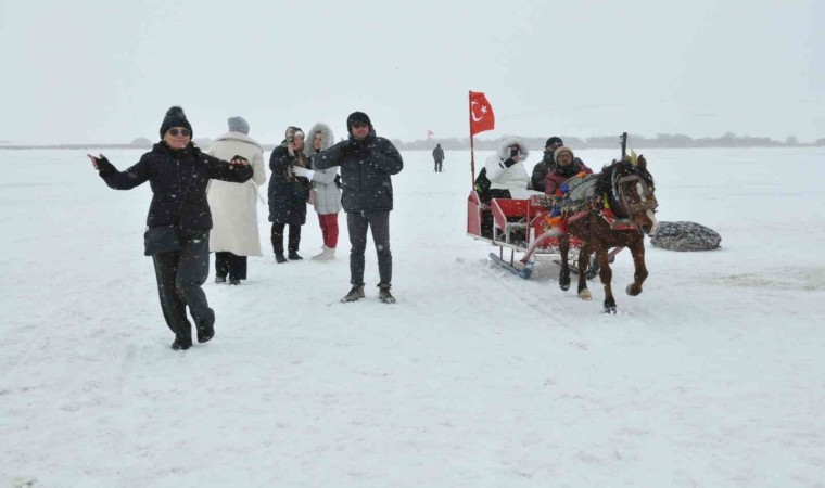 Kars son günlerde yerli turistlerin akınına uğradı. Kentin tarihi ve kültürel yerlerini görmek için aylar öncesinde Turistik Doğu Ekspresi’nden yerlerini ayırtan vatandaşlar, geldikleri Kars’ta soğuk hava ve kar yağışına aldırış etmeden Arpaçay’a bağlı Taşbaşı köyüne gelerek burada yüzeyi donan Çıldır Gölü’nün üzerine çıkıyor.