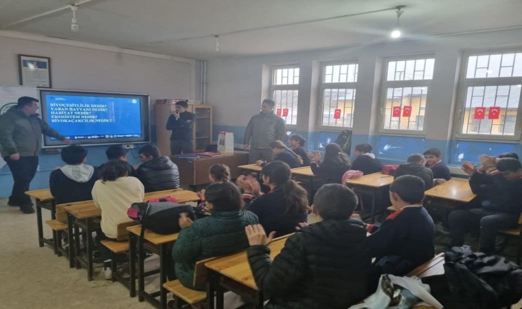 DKMP ekipleri, Genel Müdürlüğü’nün stratejik eylem planında yer alan ilköğretim okullarına yönelik doğa koruma, biyolojik çeşitlilik ve biyokaçakçılık ile mücadele eğitimi projesi çerçevesinde öğrencilere, biyoçeşitlilik, yaban hayvanı, ekosistem ve biyokaçakçılık hakkında bilgi verdi.