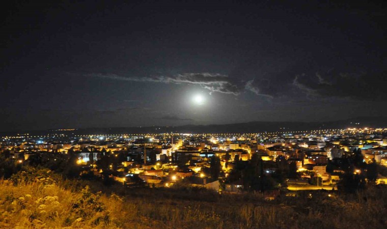 Dolunayın Kars semalarında yükselmesi adeta kartpostal görüntüler oluşturdu.