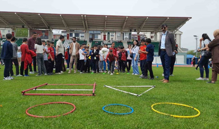 Etkinlik yarışmasında öğrenciler bowling, çemberle işbirliği, çift ayak atlama, halat çekme, koordinasyon koşusu gibi parkurlarda kişisel ve gurup olarak birincilik için mücadele ettiler.
