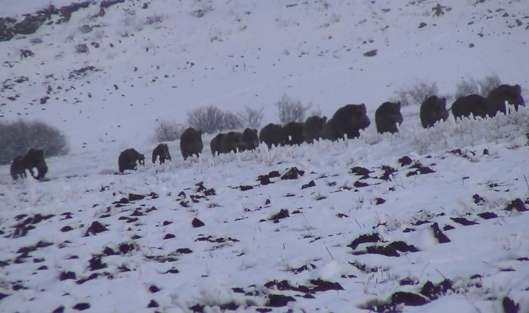 Kars-Erzurum karayolunda seyrederken domuz sürüsünü fark ettiklerini ifade eden Serkan Erkoç, “Kars’ta arazide domuz sürüsü var. Yoldan geçerken gördük. Yanlarına kadar yaklaşık bunları çekmeye çalışacağız. Tedbirimizi aldık. Domuz sürüsünün yanına kadar yaklaşıp kaydetmeye çalışacağız” dedi.