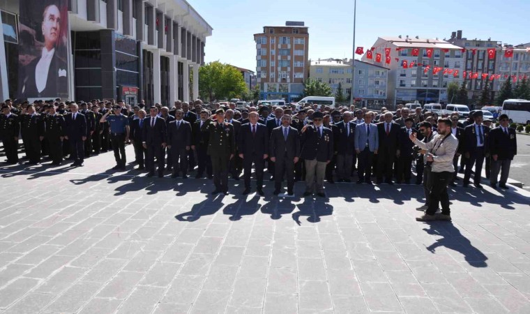 Hükümet Konağı önündeki Atatürk Anıtına Valilik Makamı, Garnizon Komutanlığı ve Belediye Başkanlığı çelenklerinin konulması ile başlayan tören, Saygı Duruşu ve İstiklal Marşı’nın okunması ve öğrenciler tarafından okunan şiirlerle devam etti.