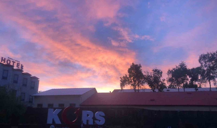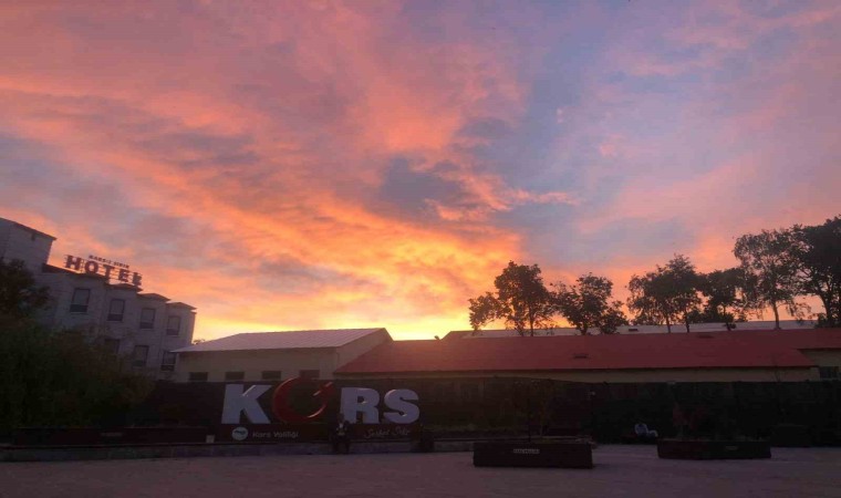 Kars’ta akşam saatlerinde kızıla bürünen gökyüzü görenleri şaşırttı.
