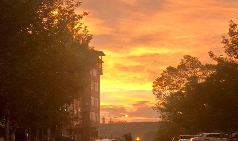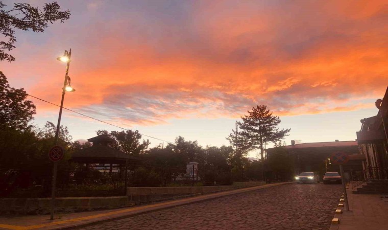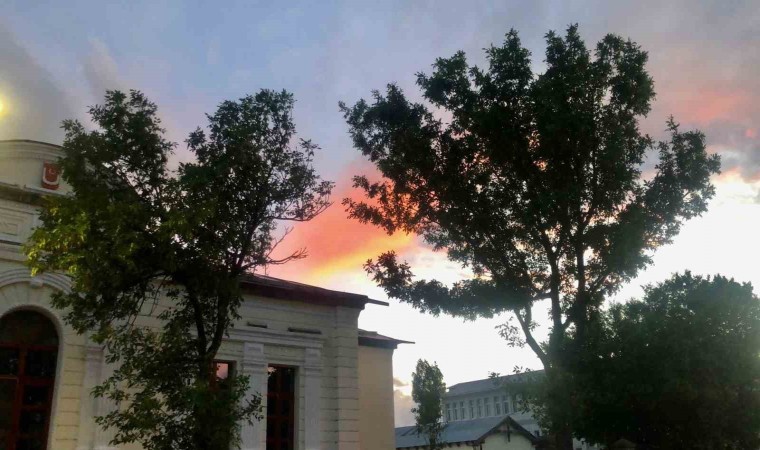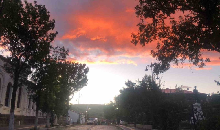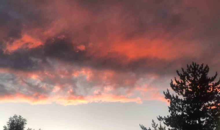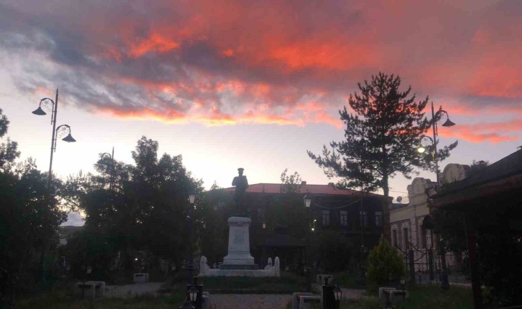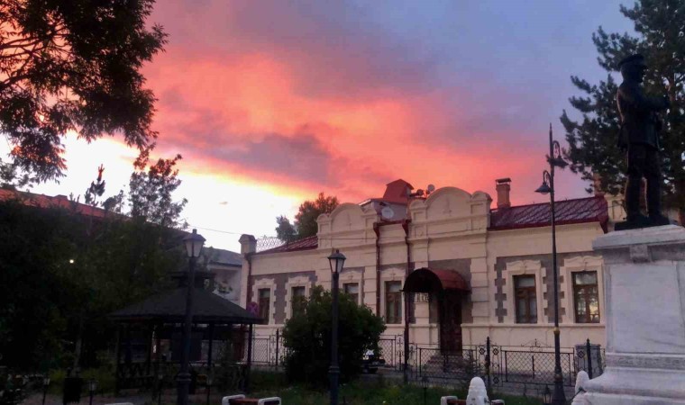 Kars’ta akşam saatlerinde gökyüzünün kızıla bürünmesi kartpostallık görüntüler ortaya çıkarırken, tarihi yapılar ve cami ile birlikte kameralara yansıdı. Vatandaşlar cep telefonlarına sarılarak anı ölümsüzleştirdi. Bulutların kızıla büründüğü görüntüler, yaklaşık 10 dakika sonra tamamen kayboldu.