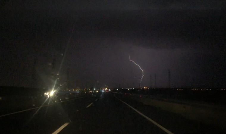 Kars’ta gece başlayan sağanak yağmurla birlikte etkili olan şimşekler gökyüzünü aydınlattı.