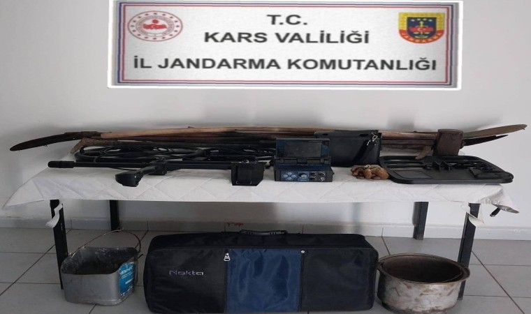 Kars İl Jandarma Komutanlığı tarafından konu ile ilgili yapılan açıklamada, “Ortak değerlerimiz olan, kültür miraslarımızı korumak amacıyla yapılan çalışmalar sonucunda; 25 Aralık 2024 günü, Kars ili Merkez ilçesi, Esenkent Köyü sınırları içerisinde S.Ç. (E-46), M.A. (E-26), O.C.A. (E-27), Y.K. (E-31), T.E. (E-44- Azerbaycan Uyruklu) ve R.I. (E-39 Azerbaycan Uyruklu) isimli şahıslar izinsiz kazı yaptığı esnada suçüstü yakalanmıştır. Şahısların kazıda kullandığı; 2 adet metal arama dedektörü ve aparatı, 1 adet dijital dedektör göstergesi ve çantası, 1 adet dedektör çantası, 1 adet balyoz, 1 adet kürek, 3 adet murç, 2 adet kazma, 1 adet çekiç, 1 çift inşaat eldiveni ve 2 adet kova, ele geçirilmiş olup, olay ile ilgili olarak şüpheli şahıslar gözaltına alınarak adli işlemlere başlanmıştır.” denildi.