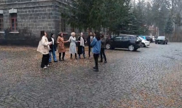 Kars’ta sabah saatlerinde etkili olan yağmur, öğlen saatlerinde yeri kar yağışına bıraktı. Kar yağışını gören üniversite öğrenceleri, türküler eşliğinde halay tutarak gönüllerince eğlendi. Karın tadını çıkaran öğrenciler daha sonra derslerine girmek için sınıflarının yolunu tuttu.