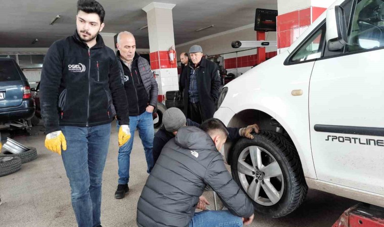 Öte yandan, lastikçilerin yolunu tutan sürücüler yoğunluğa neden olurken, bazı sürücüler ise lastiklerini değiştirmek için saatlerce bekledi. Yazlık lastiklerini araçlarından çıkararak, kışlık lastiklerini taktıran sürücüler, güvenli bir şekilde yollarına devam etti.