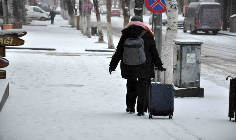 Kar yağışı ve tipinin etkili olduğu Kars’ta trafik ekipleri de trafik noktalarında sürücüleri dikkatli olmaları konusunda uyarıyor. Trafik ekipleri, kış lastiği olmayan, zincir kullanılmayan araçların kent dışına çıkmasına izin vermiyor.