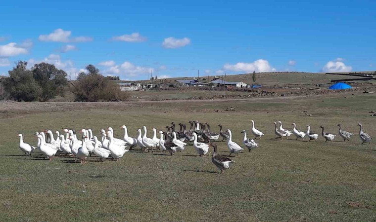 Kars’ta kazlar havaların soğumasıyla birlikte kesim öncesi et ve yağ tutması amacıyla besiye alındı.