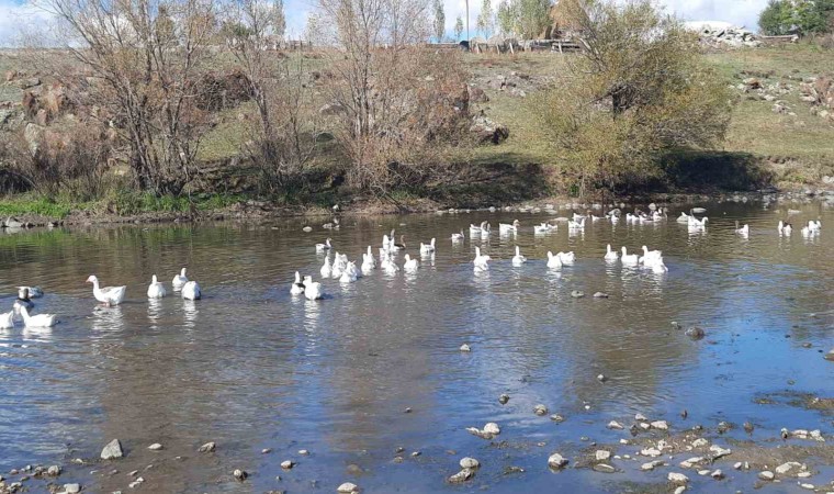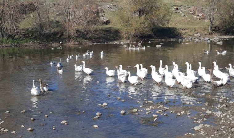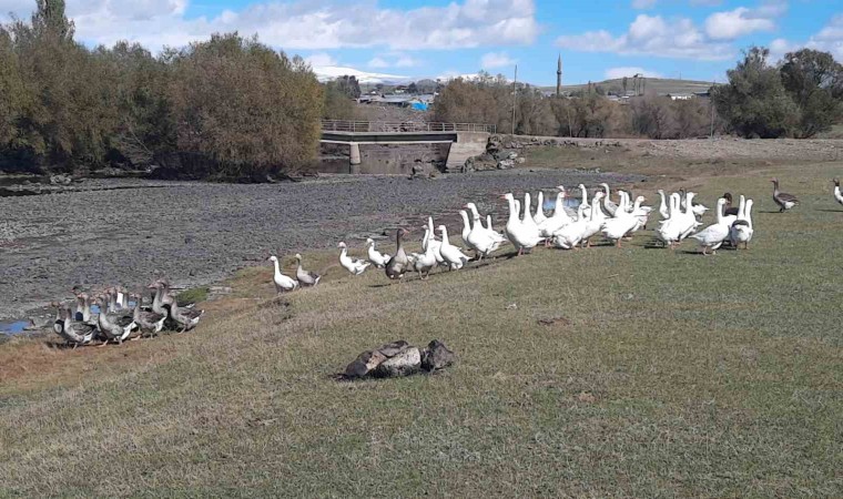 Türkiye’nin kaz yetiştiriciliğinde en önemli illerden birisi olan Kars’ta kış mevsiminde kesimi yapılacak kazlar besiye alınırken, kaz yetiştiricileri kesim öncesi kazlarını su geçen arazilerde otlatıyor.
