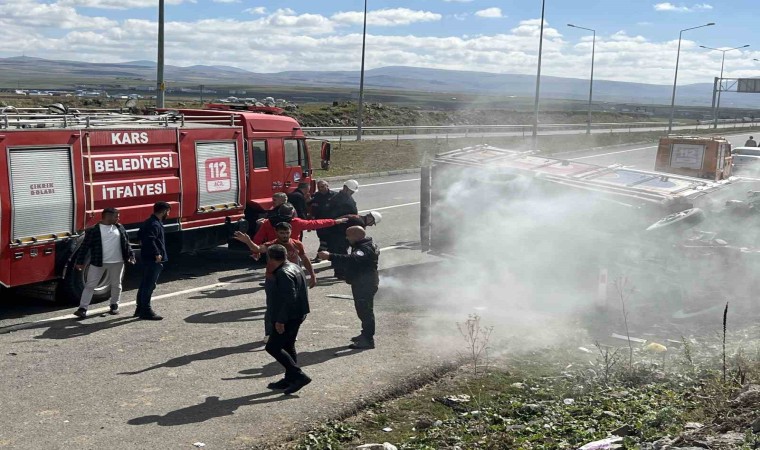 Kaza, Kars-Ardahan kara yolunda meydana geldi. Kars’tan Susuz istikametine seyir halindeki minibüs ile saman yüklü kamyon Kars-Ardahan çevre yolu kavşağında çarpıştı. Çarpışmanın şiddetiyle yan yatan kamyonda bulunan sürücü ve yanındaki yolcular yaralandı. Olay yerine itfaiye ve trafik ekipleri sevk edildi.