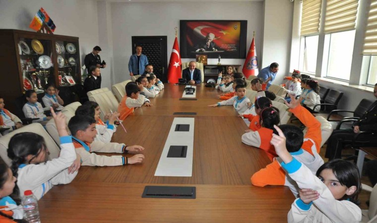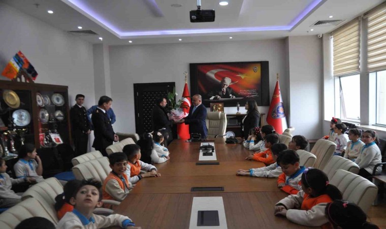 Kars merkez Yenişehir İlkokulu 3’üncü sınıf öğrencileri, Türk Polis Teşkilatının 179’ncu yıldönümü dolayısıyla, Kars İl Emniyet Müdürü Mehmet Ömür Saka’yı ziyaret etti.