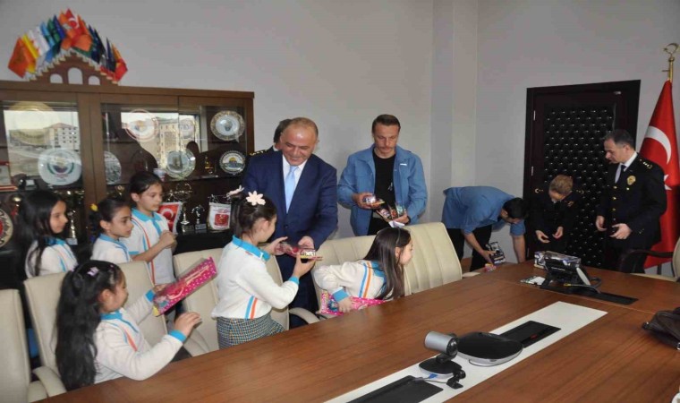 Öğrencilere çeşitli hediyeler takdim eden Saka, çocuklara birimleri gezdirdi. Öğrencilerin ziyareti hatıra fotoğrafı çektirilmesi ile sona erdi.