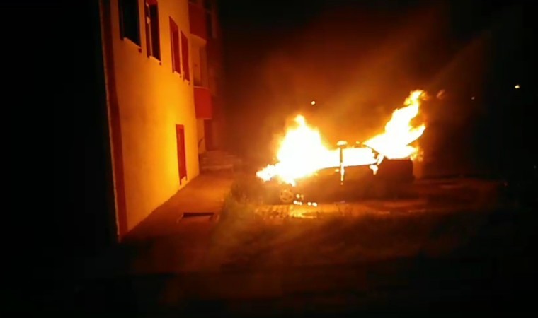 Kars’ta park halindeki otomobil alev alev yandı. O anlar vatandaşların cep telefonu kamerasına yansıdı.