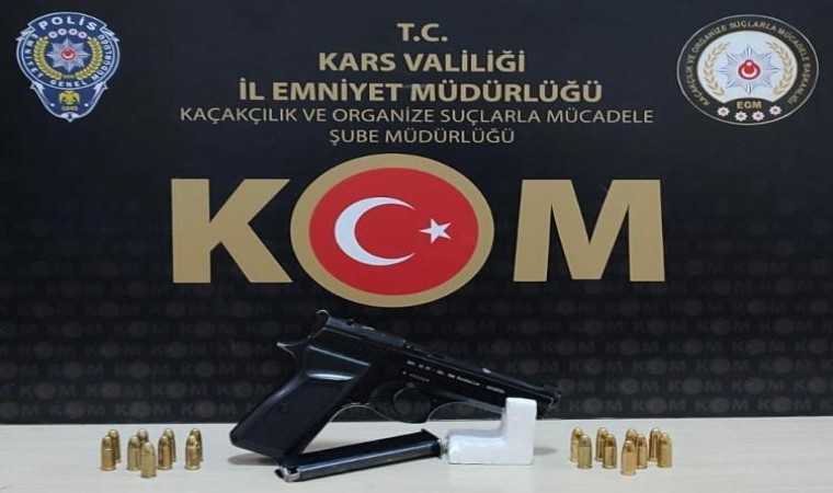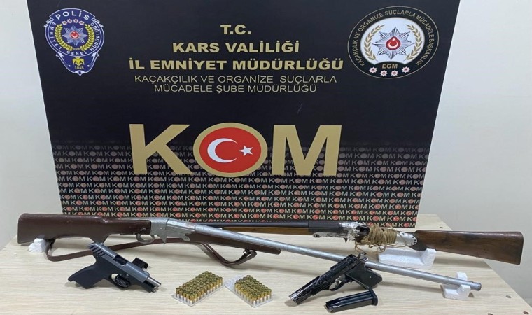 Kars Emniyet Müdürlüğü Kaçakçılık ve Organize Suçlarla Mücadele Şube Müdürlüğü KOM) ekiplerince kent merkezinde yapılan çalışmalarda 2 ruhsatsız tabanca,2 ruhsatsız av tüfeği, 2 şarjör ve 89 fişek ele geçirildi. Olayla ilgili olarak E.A. (39) ve Ş.T. (24) gözaltına alınarak İl Emniyet Müdürlüğü’ne getirildi.