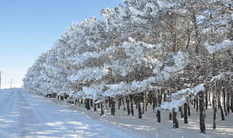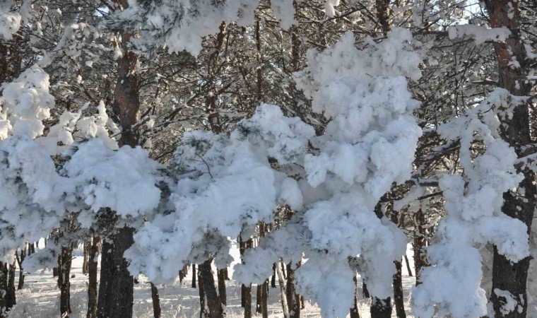 Kars’ta etkili olan dondurucu soğuklar, doğada kartpostallık manzaralar oluşturdu. Hava sıcaklığının geceleri sıfırın altında 20 dereceye kadar düşmesiyle çam ağaçlarının dallarında biriken kar, buz kütlelerine dönüştü.