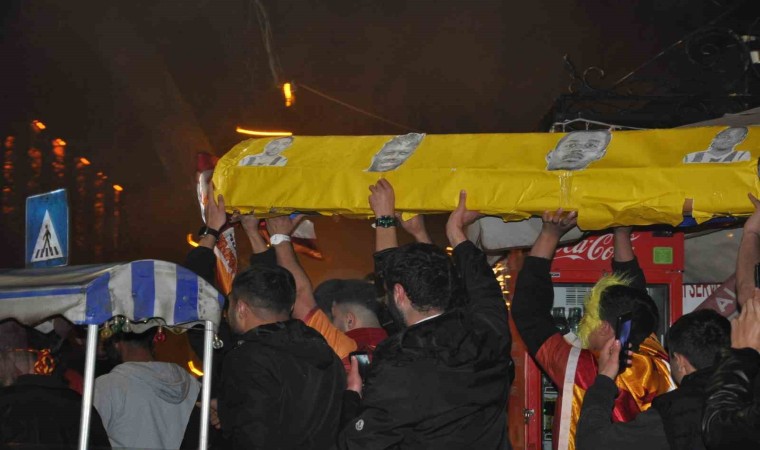 Galatasaray’ın deplasmanda Konyaspor’u 3-0 yenerek şampiyonluğunu ilan etmesinin ardından sarı-kırmızılı taraftarlar Kars’ta sokaklara döküldü. Bazı taraftarlar ise tabutla Fenerbahçeli sporcuları taşıdı. Sırtladıkları tabuta Fenerbahçeli yönetici ve sporcuların resimlerini yapıştıran Galatasaraylı taraftarlar, caddelerde bir süre tabutla tur atarak şampiyonluk çığlıkları attı.