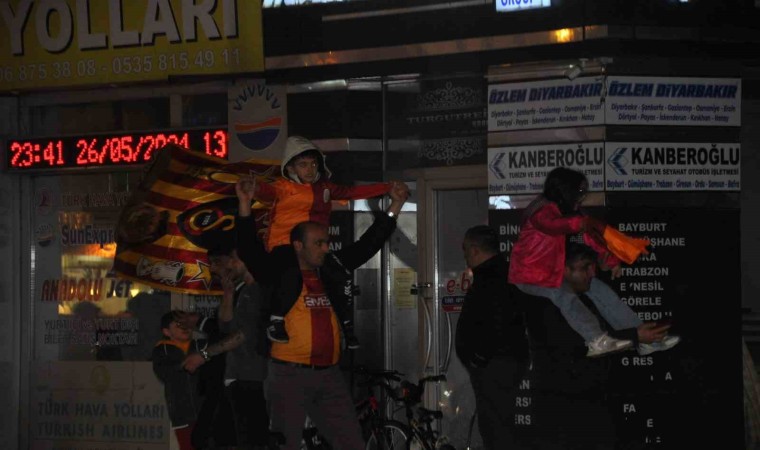 Kars’ta Faikbey Caddesi üzerinde bir araya gelen sarı-kırmızılı taraftarlar, ellerine bayrakları ve meşalelerini alarak At Heykeli önünde şampiyonluğu doyasıya eğlenerek kutladı. Bazı taraftalar ise araçlarıyla konvoy yaparak şampiyonluğun tadını çıkardı.