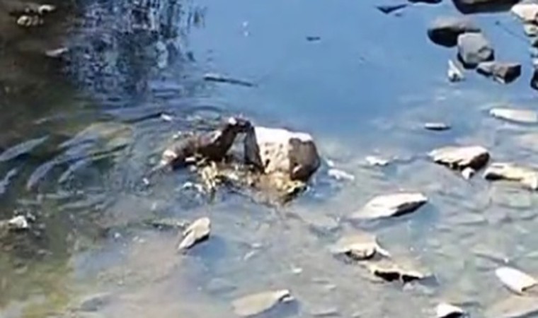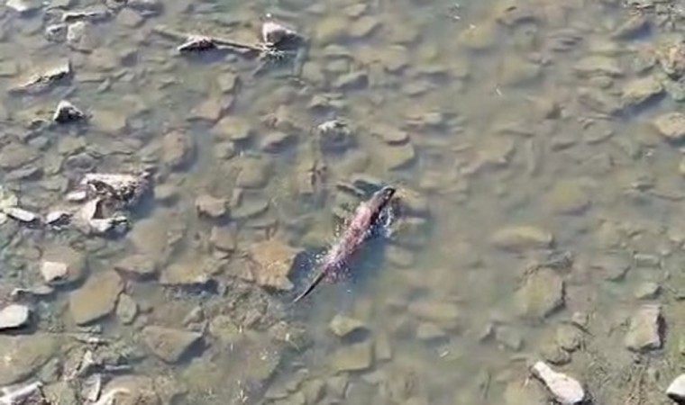 Kars’ta nesli tükenme tehlikesi altında olan su samuru görüntülendi. Kars Çayı’nda yüzen su samuru bir vatandaş tarafından cep telefonuyla kaydedildi.
