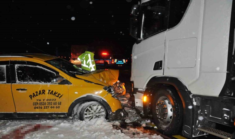 Alınan bilgiye göre, kar yağışının sürdüğü Kağızman ilçesine bağlı bağlı Paslı Geçidinde Veysel Taş yönetimindeki 25 ABG 902 plakalı tır ile Mehmet Salman idaresindeki 76 T 0032 plakalı ticari taksi çarpıştı. İhbar üzerine bölgeye 112 acil sağlık ve jandarma ekipleri sevk edildi. Kazada taksi sürücüsü ile takside bulunan Medet Kızılay (58), Mecit Kızılay ve Makude Kızılay yaralandı. Yaralılar ambulanslarla Kağızman Devlet Hastanesine kaldırıldı. Medet Kızılay, hastanede doktorların tüm müdahalelerine rağmen kurtarılamadı. Şahsın cenazesi otopsi için morga kaldırıldı.