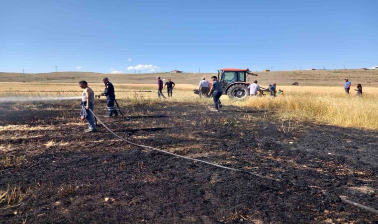 Biçerdöverde çıkan yangın bir kısım tarlayı da yaktı. İtfaiye ekipleri hem biçerdöveri, hem de yanan tarlayı söndürürken, biçerdöverin neden yandığı araştırılıyor.