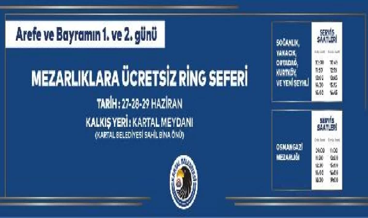 Bu ücretsiz servislerle vatandaşlar, sevdiklerinin mezarlarını ziyaret etmek için kolay ve rahat bir şekilde ulaşabilecekler. Mezarlık ziyaretlerinin huzur içinde gerçekleşmesi için Kartal Belediyesi tarafından sağlanan bu hizmet, geleneksel bir uygulama olarak devam ediyor.