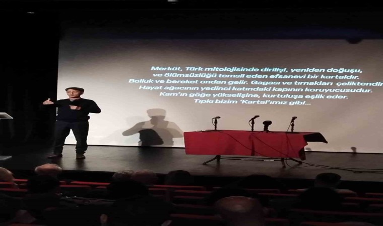 Açılış konuşmasını yapan Dr. Bingür Sönmez "Haydarpaşa’ya yorgun bir komutan geldi kara trenle. Kendisi yedinci ordu komutanlığına azledilmiş olan Mustafa Kemal. Galata’ya geçmek gerekiyordu fakat o gün 55 parça itilaf devletleri donanması Dolmabahçe Sarayı önüne demirleyip topları saraya çevirmekteydi. Sahiller arası tüm nakliye durmuş, gemilerin demirlemesini beklemektedirler. Mustafa Kemal Paşa hüzünlü gözlerle gemileri izler. Ancak öğleden sonra 3’te gemiler İstanbul’u kapattıktan sonra geçiş izni verirler. İstimbot çelik botlar arasından geçerken Mustafa Kemal Paşa kağıt Abbas’ın ağlamaya başladığını görür. Mustafa Kemal elini kağıt Abbas’ın eline koyarak "Ağlama çocuk! Geldikleri gibi giderler..." Burada bir temenni değil bildiri var. Birçok tarihçi bu sözü Kurtuluş Savaşı’nın işaret fişeği olarak kabul eder. Elbette söylenen söz kadar söylendiği yer de önemlidir. Bu kutsal cümle daha sonra Kartal ismini alacak olan istimbotta söylenmiştir. Tuzla’nın Güzelyalı koyunda rastlanılan, kendi haline terk edilerek hurdacıya satılan Kartal istimbotu gönüllüler platformu tarafından satın alınarak parçalanma tehlikesinden kurtuldu. Yenilenme çalışmaları 5 bine yakın vatandaşın, kimilerinin maddi katkıları hayata geçirildi. Yenileme çalışmaları 13 Kasım 2017’den 13 Kasım 2018’e sadece 1 sene içinde süratle tamamlandı" dedi.