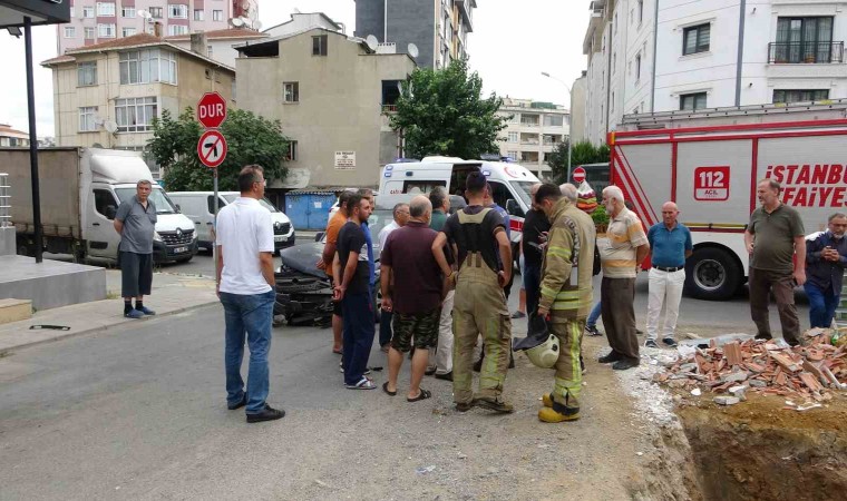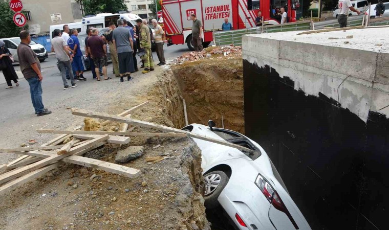 Kartal’da yol kesişiminde hafif ticari araçla çarpışan otomobil kontrolden çıkarak inşaatın boşluğuna düştü. Yaklaşık 2 metrelik inşaat boşluğuna düşen otomobilde bulunan 1’i kız 4 kişi kaçtı, 1 kişi ambulansla hastaneye kaldırıldı. Kaza anı güvenlik kamerasına yansıdı.