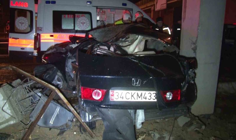 Kaza saat 04.00 sıralarında Kartal Esenkent Mahallesi D-100 yan yol üzerinde meydana geldi. İddiaya göre sürücüsünün ismi henüz öğrenilemeyen, 34 CKM 433 plakalı otomobil kontrolden çıkarak yol kenarında bulunan üst geçidin beton direklerine çarptı.