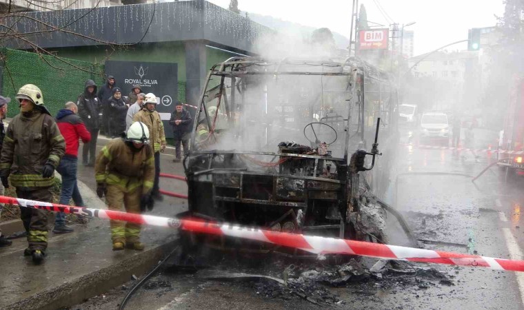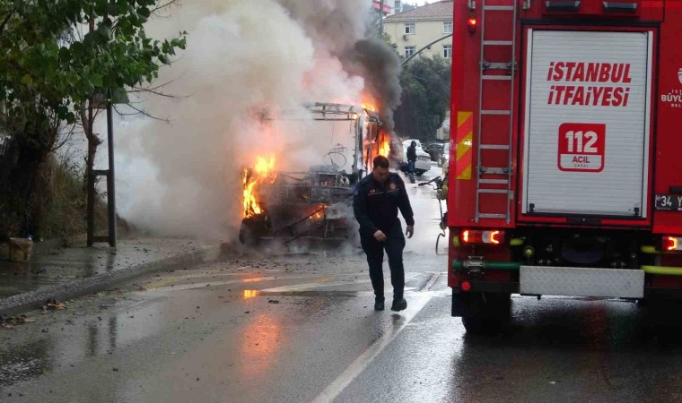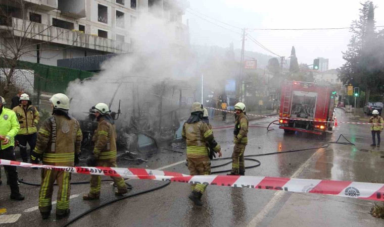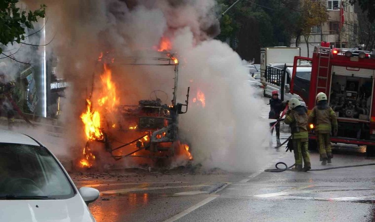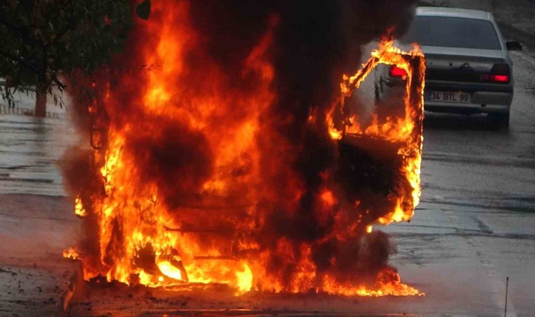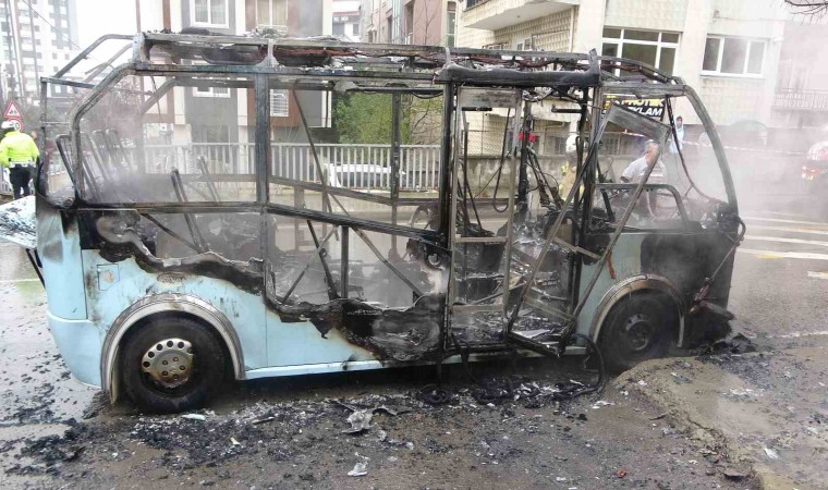 Kartal’da bir yolcu minibüsü alev alev yandı. Minibüste bulunan 20 kişi yangından önce tahliye edilirken, yanan minibüs ise küle döndü.