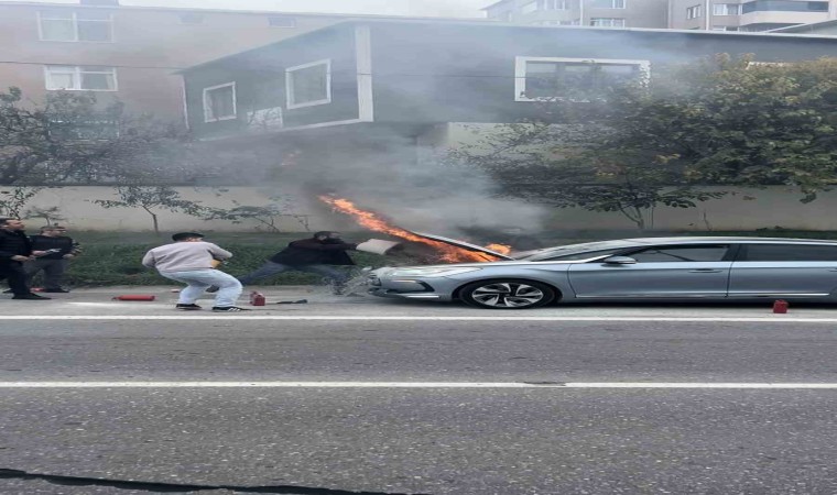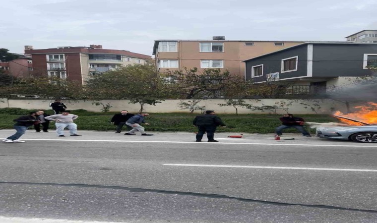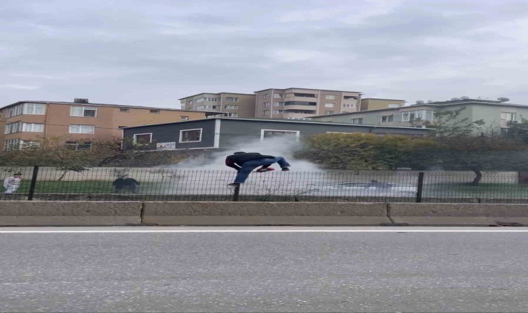 Kartal TEM bağlantı yolu üzerinde seyir halinde olan bir aracın motor kısmında yangın çıktı. Çıkan yangını gören diğer sürücüler yolda durarak yangının söndürülmesi için adeta seferber oldular.