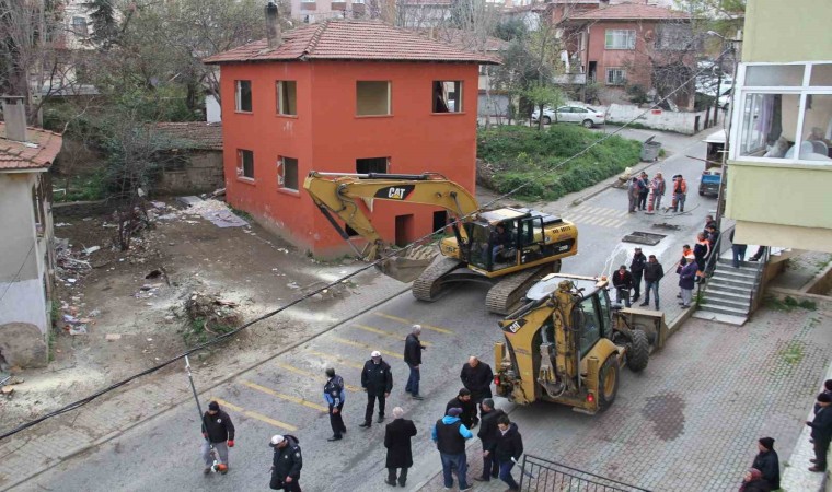 Afet işleri müdürlüğü ekipleri yıkım anında hazır bulunuyor