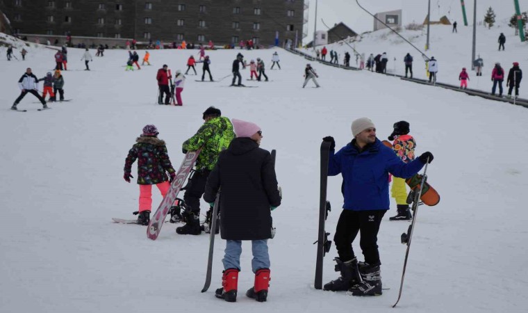 Bolu kent merkezine 45 kilometre uzaklıkta bulunan Kartalkaya Kayak Merkezi’nde yılın son gününde tatilciler kayak pistlerini doldurdu. Kış mevsiminde yerli ve yabancı turistlerin ilgi odağı olan kayak merkezinde bulunan 2 bin yatak kapasiteli toplam 5 otel yüzde yüz doluluk oranına ulaştı. Yapay karlama ile birlikte kar kalınlığının 80 santimetreyi bulduğu Kartalkaya’ya gelen tatilciler tamamı açık olan pistlerde kayak yapmanın keyfini çıkarıyor. Gece ise çeşitli programların olduğu Kartalkaya’da tatilciler gece saatlerinde de kayak yapma fırsatı bulabilecek.
