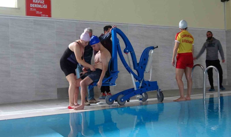 Ege ve diğer engelliler rahatlıkla havuza girip çıkabiliyorlar