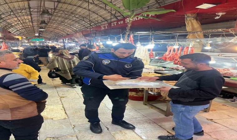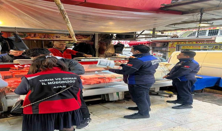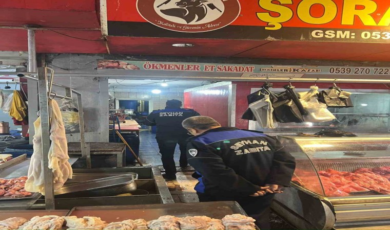 Adana’da Seyhan Belediyesi zabıta ekipleri, Kasaplar Çarşısı’nda denetim yapıp etlerden numune aldı.