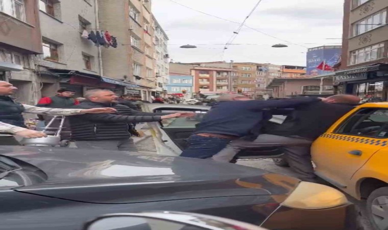 Kavgada sürücü taksiciye yumruklar savururken, taksici de ona karşılık verdi. Vatandaşların araya girmesiyle ayrılan taraflar birbirlerinden şikayetçi olmadı. Kavga sonrası taraflar araçlarına binip olay yerinden ayrıldı. Yaşananlar kameralara anbean yansırken bir kadın, “10 kişi bir adama mı giriyorsunuz” diye tepki gösterdi.