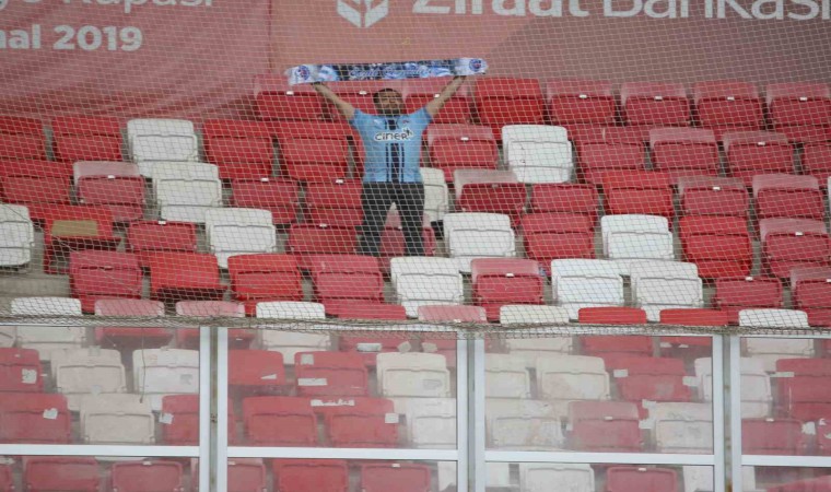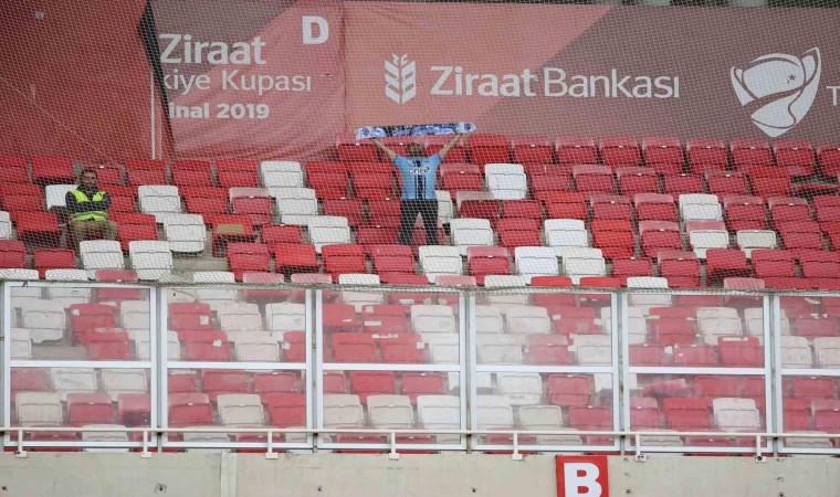 Sivas 4 Eylül Stadı’nda oynanan karşılaşmada konuk takım taraftarları için ayrılan bölümde tek başına maçı izleyen taraftar, takımına kendi tezahüratlarıyla destek verdi.