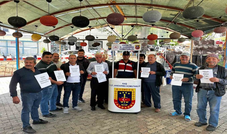 Kaş İlçe Jandarma Komutanlığı ekiplerince vatandaşların yoğunluk olarak bulundukları alanlarda "Mutluluğa Kurşun Sıkma Geleceğini Karartma" projesi kapsamında stant kuruldu. Ekipler, ‘Silahsız düğün silahsız eğlence’ sloganı ile düğünlerde silah atılmasının önlenmesini amaçlayan broşürleri vatandaşlara verip bilgilendirmelerde bulundu.
