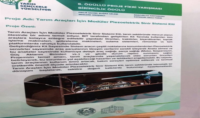 Kastamonu Üniversitesi her yıl düzenlenen “Tarım Gençlerle Yükseliyor” fikir yarışmasında Akıllı Tarım Kategorisi’nde, “Tarım Araçları için Modüler Piezoelektrik Sinir Sistemi Kiti” konulu proje fikriyle birincilik ödülüne layık görüldü.