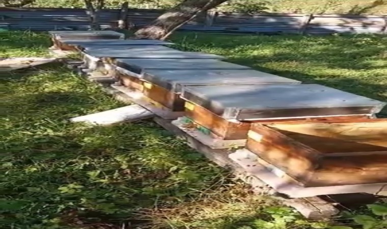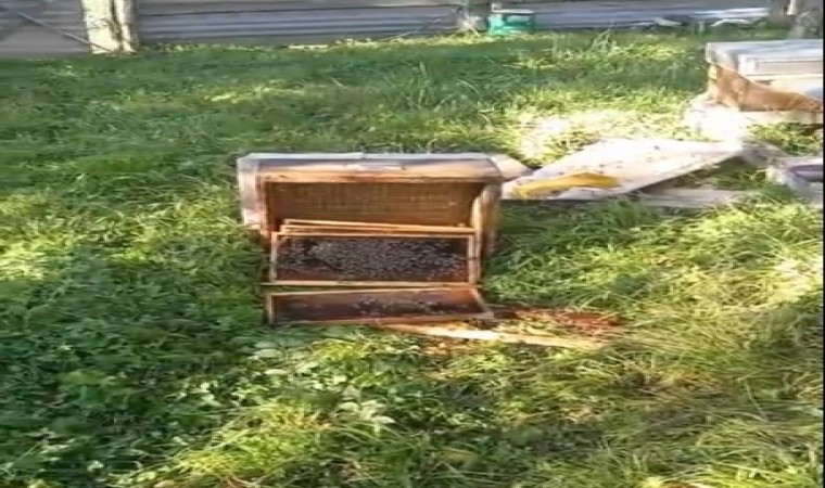 Çelik, “Bu akşam ayının sürprizi benim arılığım oldu. Ayı, kovanların ağızlarını koparmış, üç tane kovanımda zayiatım var. Kovanın birinde hiç arı kalmamış, dağıtmış kovanı. Petekleri kovandan çıkartıp yemiş. Baya da kovanlarla uğraşmış. Telin alt kısmından girmiş. Telin altındaki toprağı oyup bahçeye girmiş. Yapabileceğimiz bir şey yok artık” dedi.
