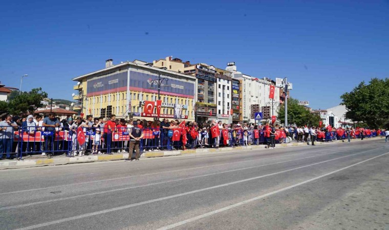 Daha sonra Cumhuriyet Meydanında tören düzenlendi. Törende saygı duruşunda bulunuldu ve İstiklal Marşı okundu. Atabeygazi Mehteran Derneği tarafından kahramanlık marşları çalındı. Mehteran gösterisinden sonra öğrenciler tarafından şiirler okundu. Merkez Ortaokulu Halk Oyunları ekibinin gösterisinin ardından Kastamonu İl Jandarma Komutanlığına bağlı birlikte gösteride bulundu. Bomba imha ve kayıp aramada kullanılan köpekler, hünerlerini sergiledi. Daha sonra tören geçişi yapıldı. Tören geçişinde özellikle komando birlikleri vatandaşlar tarafından büyük alkış aldı.