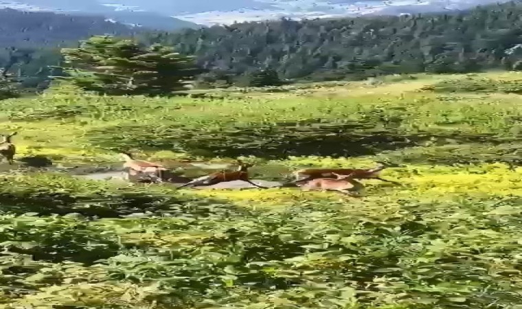 Kastamonu’nun İhsangazi ilçesinde Orman İşletme Müdürlüğü ekipleri, ormanlık alanda ceylan sürüsü gördü. Ekipler, ceylan sürüsünü cep telefonu ile görüntüledi. Ekipleri fark eden ceylanlar koşarak bölgeden uzaklaştı.