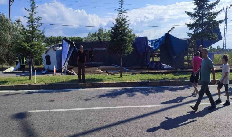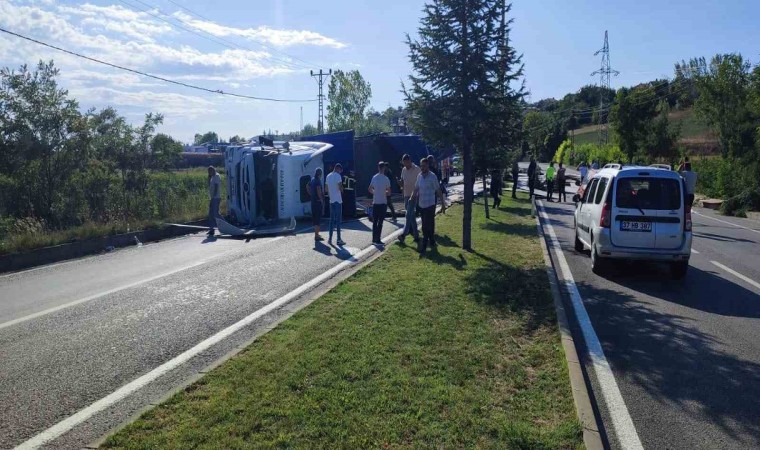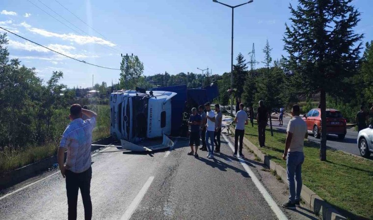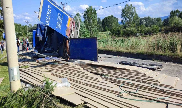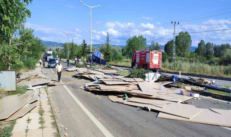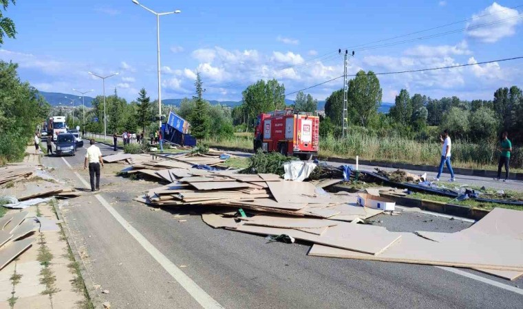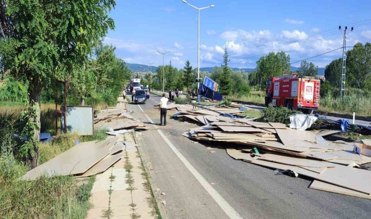 Kastamonu’nun Taşköprü ilçesinde devrilen tırdaki suntalar yola savruldu. Kazada sürücüsü yaralandı.