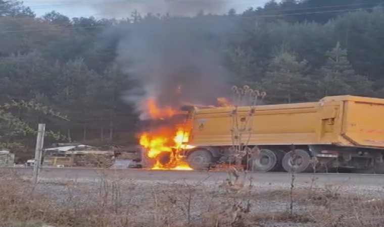 Kastamonu’da seyir halindeki hafriyat kamyonu alev alev yandı. Yanan kamyonu itfaiye ekipleri söndürdü.