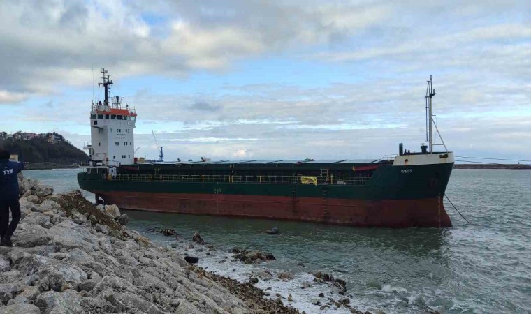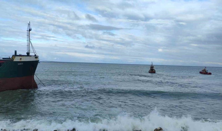Kastamonu’nun İnebolu ilçesinde fırtınada karaya oturan geminin çekilmesi için çalışma başlatıldı.